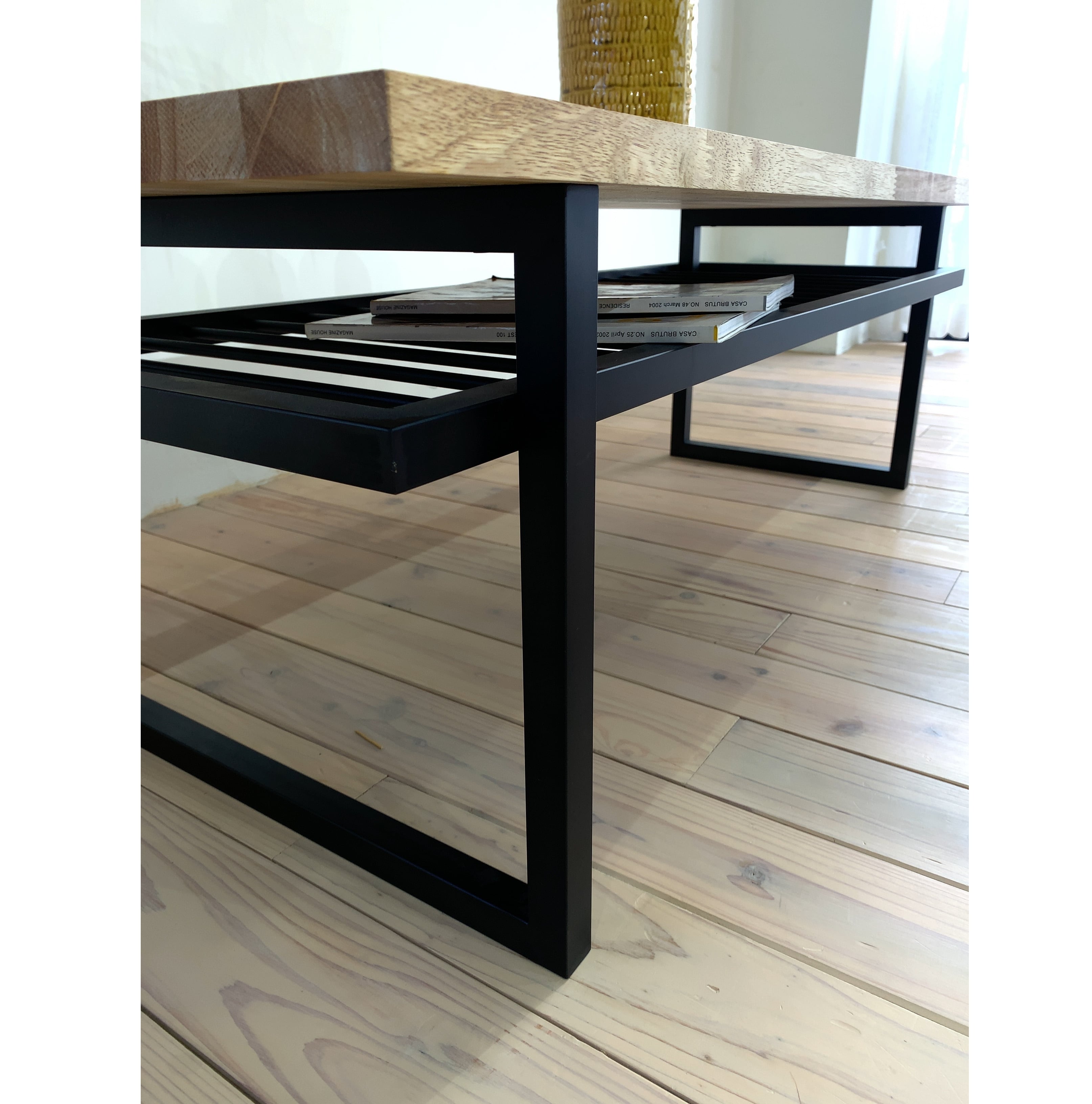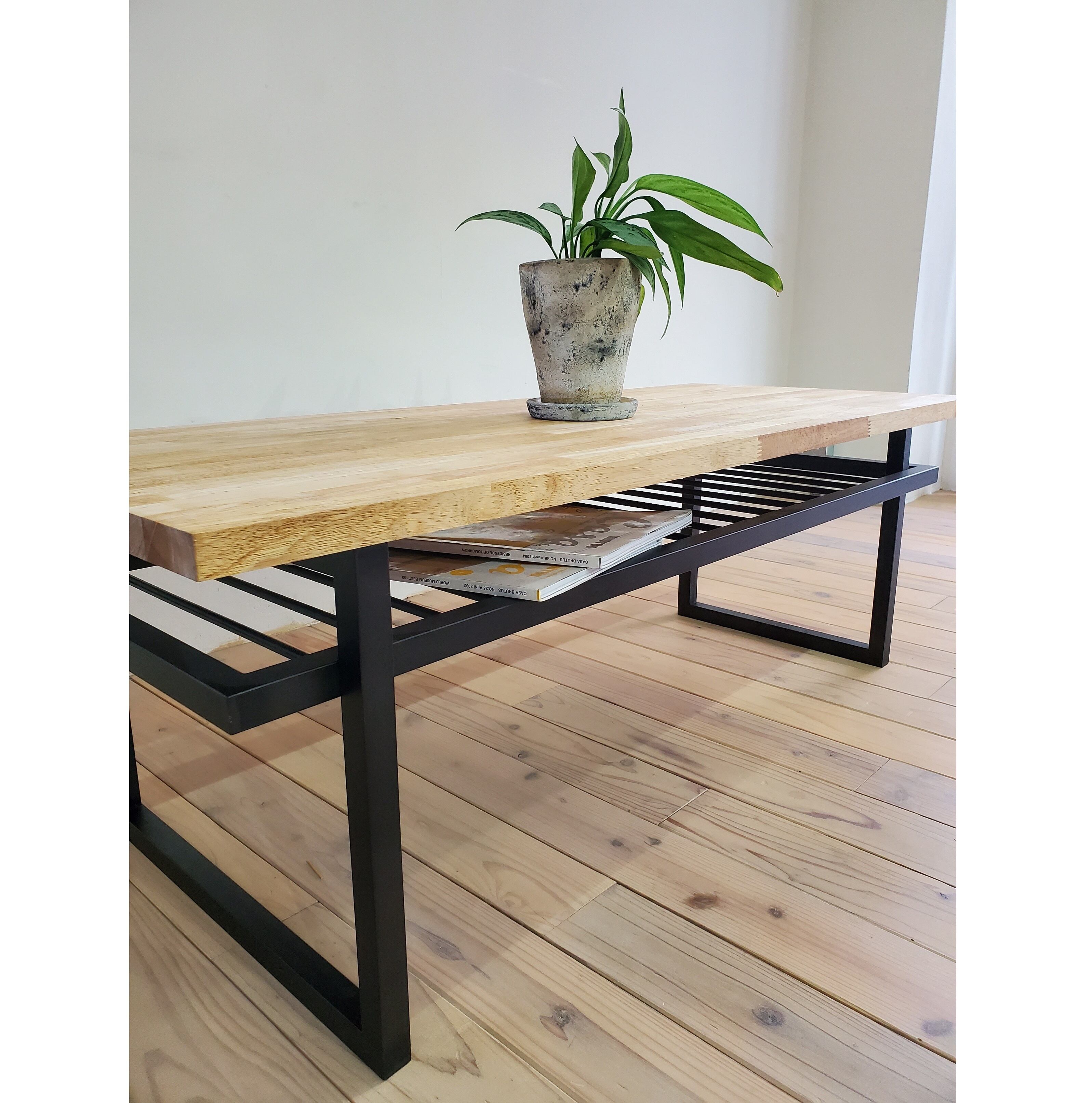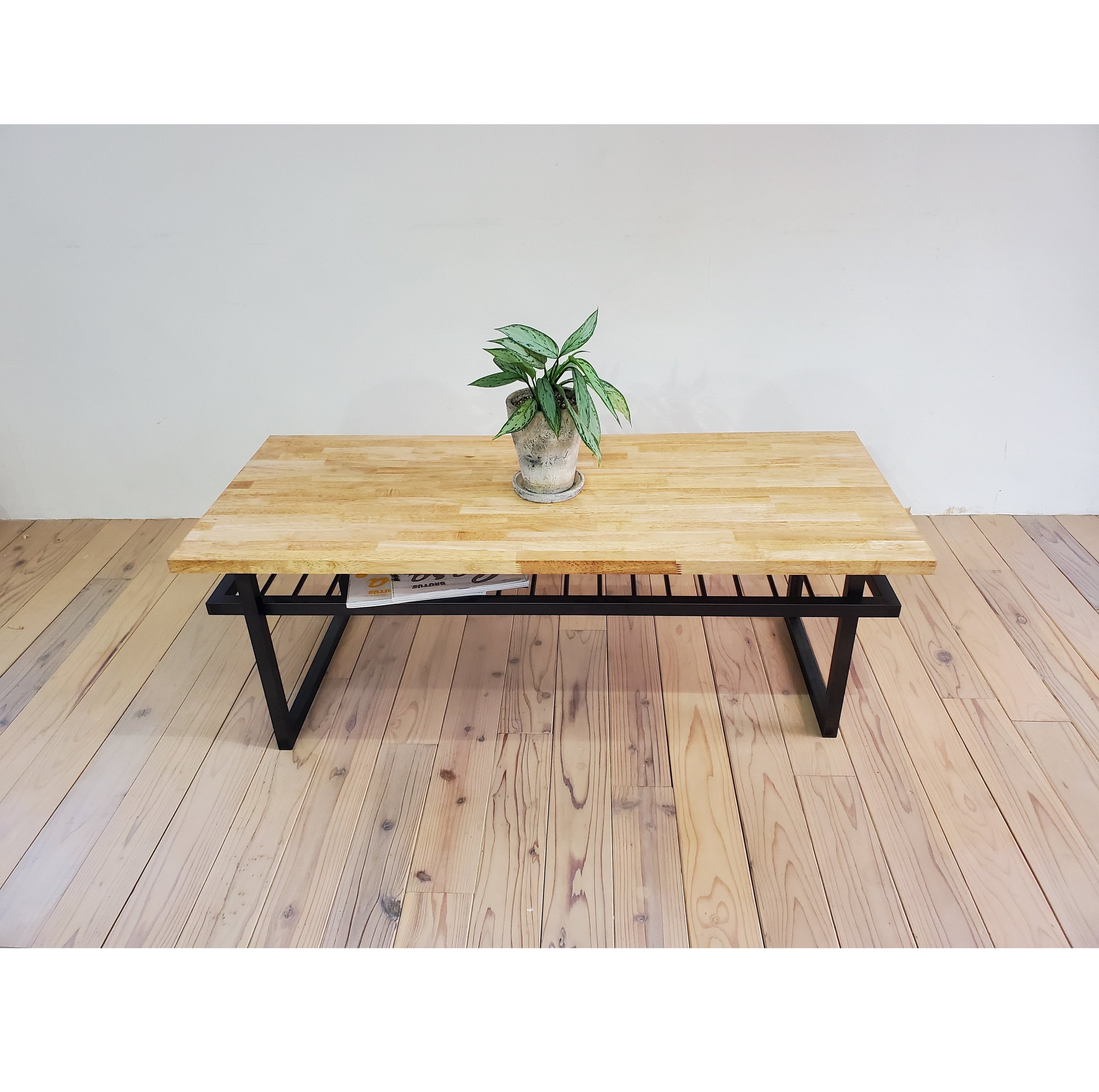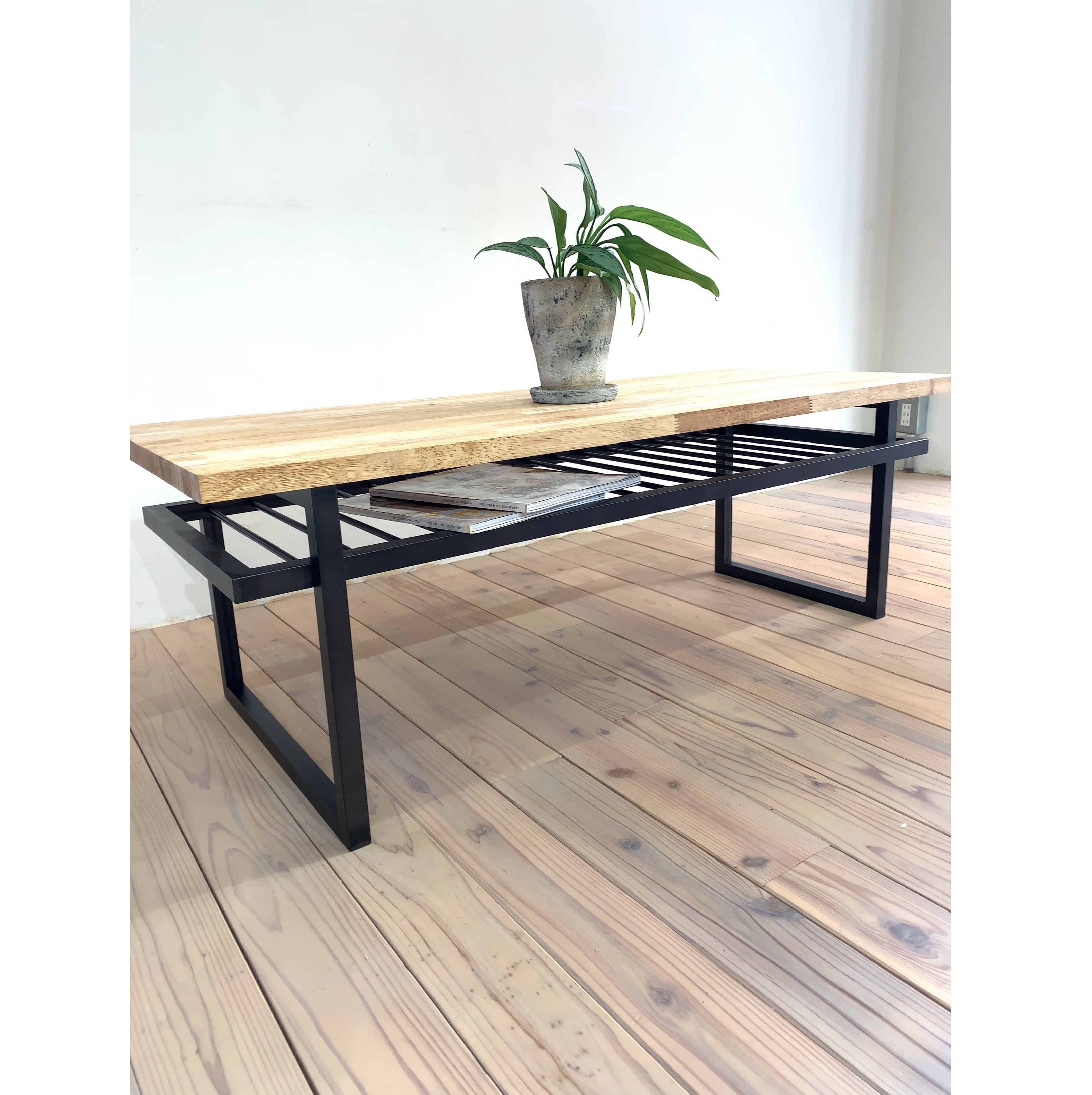 アイアンとラバー無垢天板を使用したローテーブルです。
